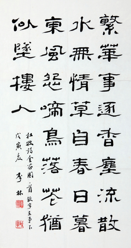 李林,1931年生于吉林舒兰,2001年1月在吉林市病逝。中国书协会员,吉林颇具影响的隶书名家